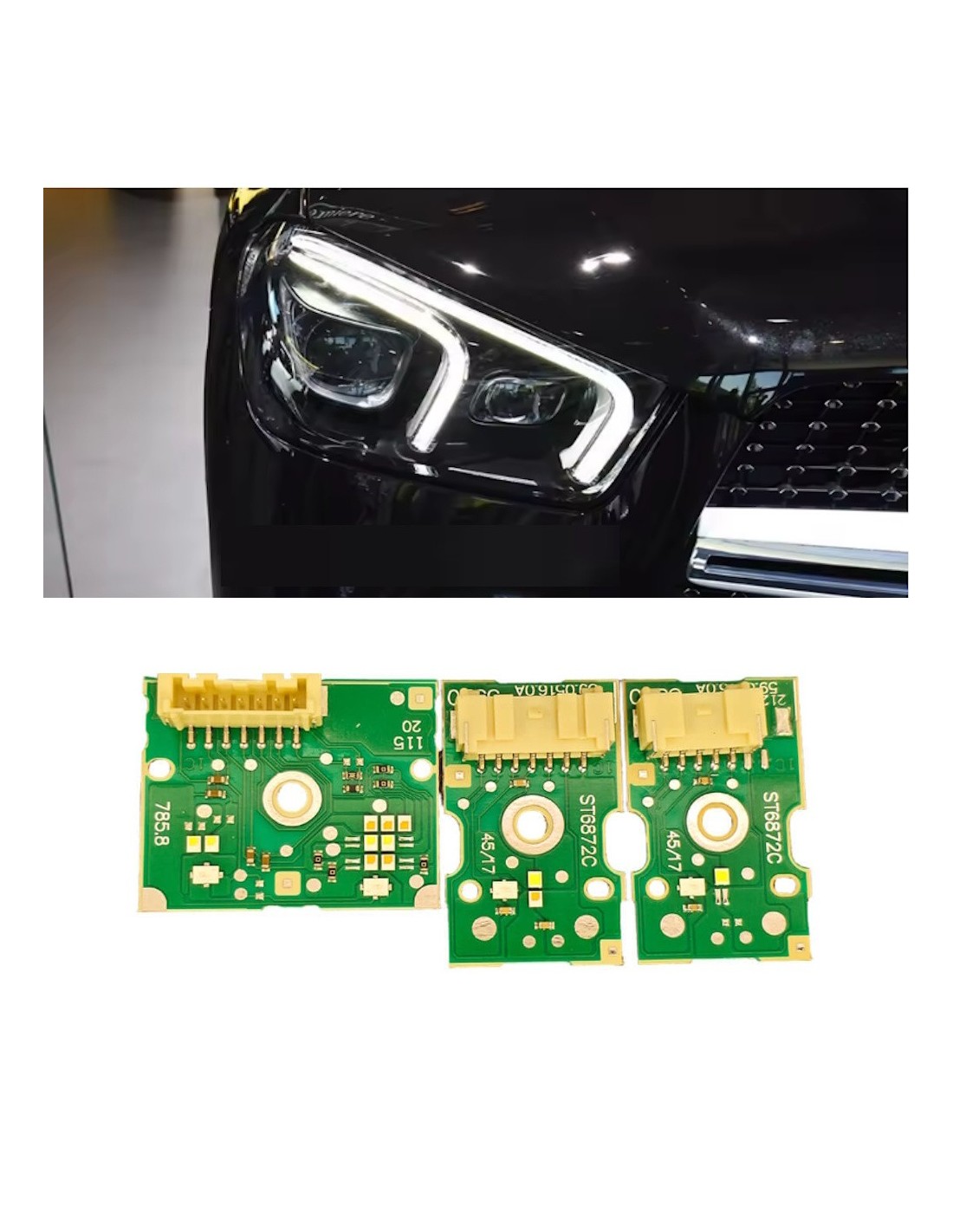 Modulo led per faro con accensione led blu in avvio e luce diurna e freccia lato Destro . Lampada che si utilizza per la sostituzione dei led difettosi della luce diurna o e della freccia sulle mercedes Benz Classe W167 e con connettore 7 PIN.