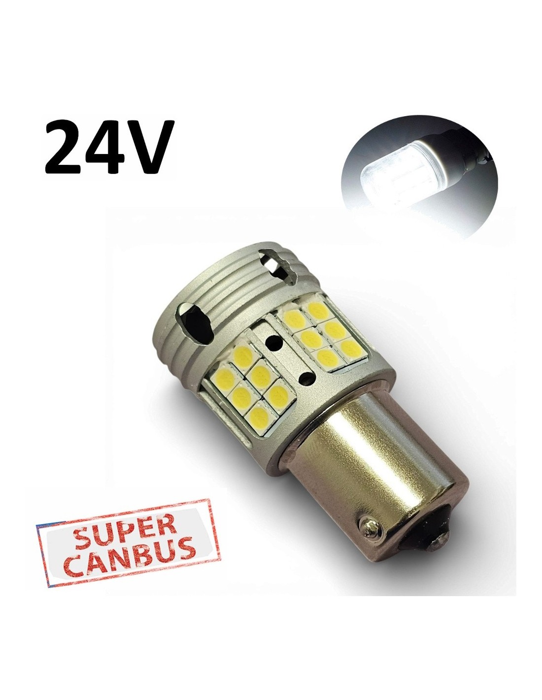 Una Lampada Led P21W 1156 BA15S BAU15S 24V Super Canbus 6000K Bianco Freddo STAR Series Retromarcia Posizione
